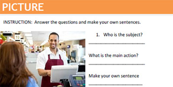 絵を見て瞬間英作文: 絵を見て簡単な質問に答え、絵について作文する。 文法・構文的に正確な英文を作成できるスピードが速くなればなるほどリスニング・リーディングで理解できるスピードも速くなります。 |