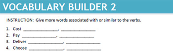 動作を表す語句の言い換えを学ぶ: 1つの動作に対しては、抽象的な言い方、易しい単語の使用や難しい単語の使用があります。 ここでは1つの動作、表現を別の言い方に変える練習をします。 |